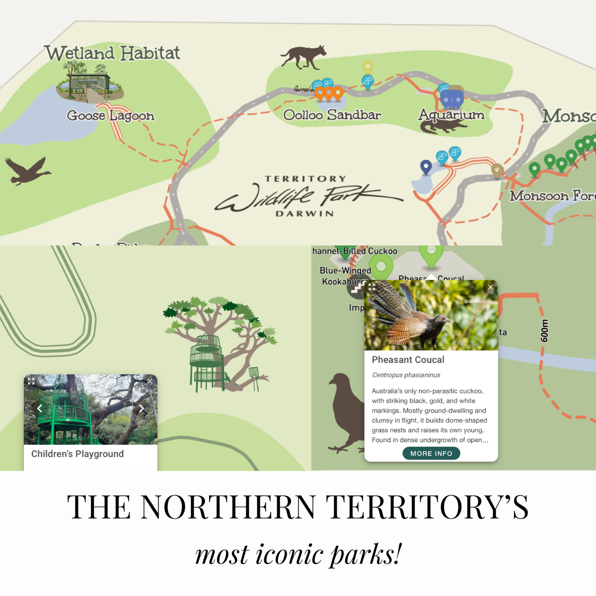 Whether you’re a local grabbing a coffee at Eva’s Café or a first-time visitor discovering the Territory’s unique wildlife, the maps make navigation easy and effortless. Real-time way finding shows your position as you move, while multi-language support ensures every visitor feels at home.