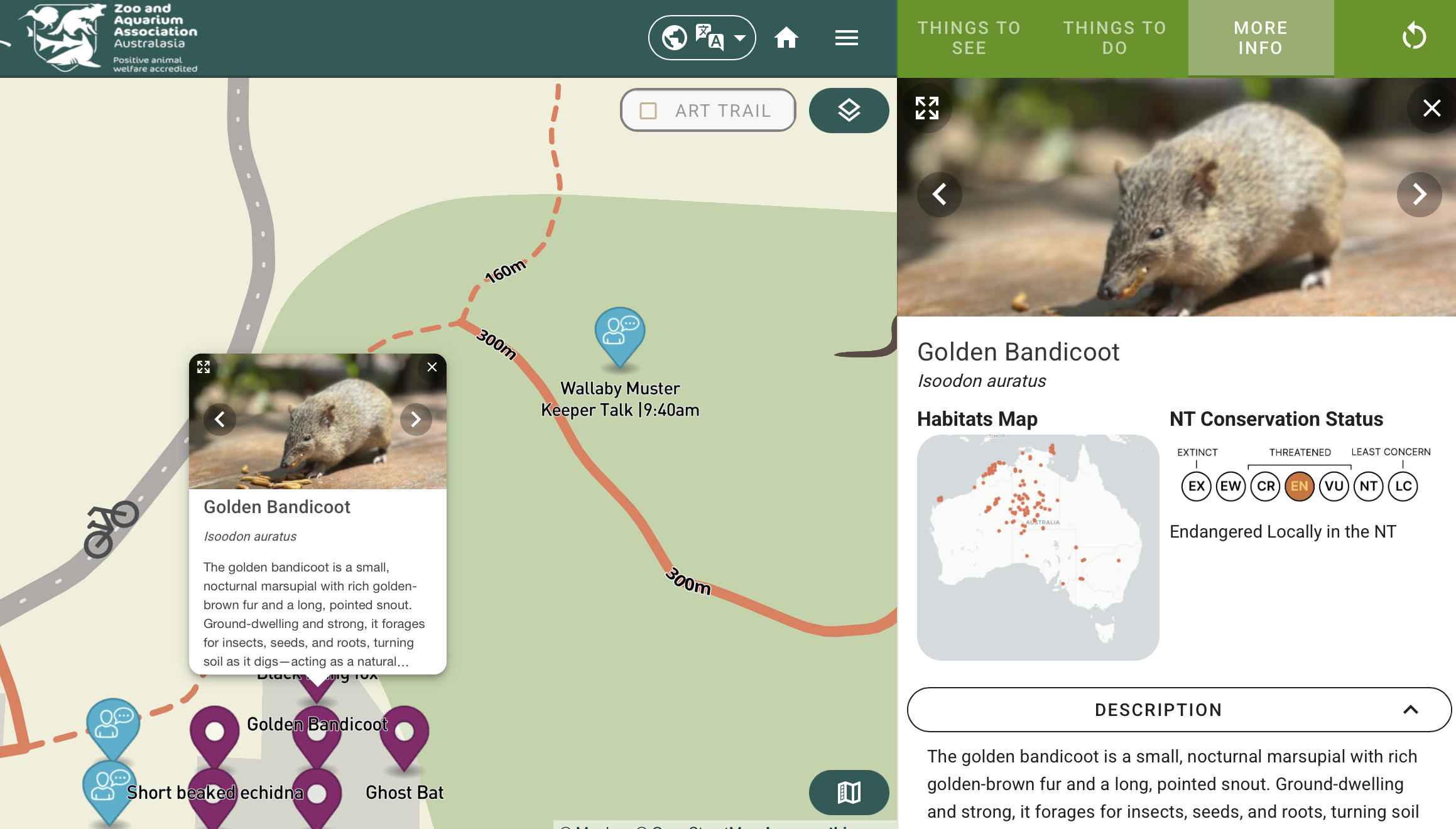 The Golden Bandicoot as featured on the Territory Wildlife Park map.
